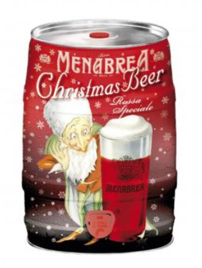 La Christmas Beer di Menabrea in fustino da 5 litri è il formato perfetto per le giornate di festa con parenti ed amici. Il fusto è utilizzabile da solo grazie al comodo rubinetto o con la spillatrice H.Koenig. Questa birra rossa dall'equilibrio notevole è prodotta solo in occasione del periodo natalizio. Si caratterizza per una spiccata aromatizzazione, ottenuta con l’impiego dei migliori malti e un tenore alcolico non troppo elevato. La grafica del fusto, in serie limitata, è opera di Giorgio Muggiani, illustratore e pittore.