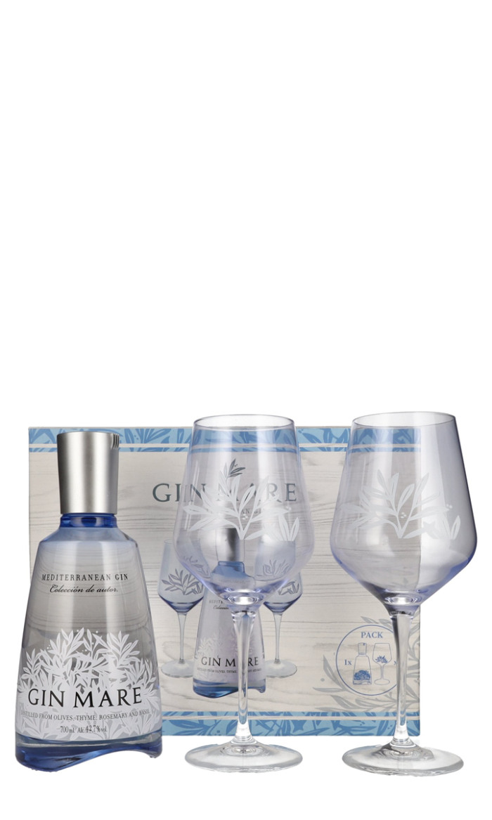CONFEZIONE REGALO CONTENENTE 1 BOTTIGLIA E 2 BICCHIERI ORIGINALI GIN MARE