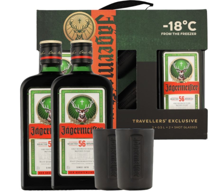 Bellissima Confezione Regalo Jagermeister 0,50 l x 2+ 2 shot glasses