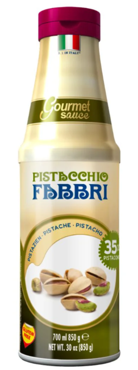 Tonalità verde scuro, dalla trama fitta. Al naso note molto intense di pistacchio di Bronte tostate di frutta secca, mandorla, noce di macadamia e con sentori vegetali. Al palato è dolce, molto morbido e molto equilibrato con un finale persistente. Si abbina al meglio con cioccolato, latte, caffè, yogurt e creme fredde. Con rum bianco e ghiaccio in versione alcolica per un ottimo Daiquiri al Pistacchio e per guarnire la specialità di casa Fabbri, Crema Fredda al Pistacchio.
